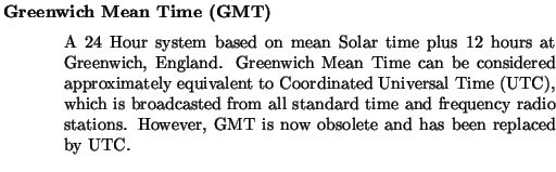 A variety of words, expressions and definitions are used in describing time and temporal aspects. The glossary provided here should help understanding them. It was partly adopted from the 'National Institute of Standards and Technology', Boulder CO.