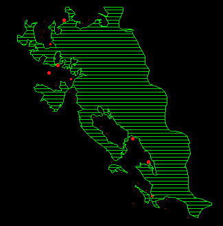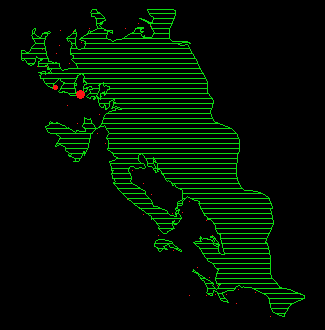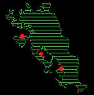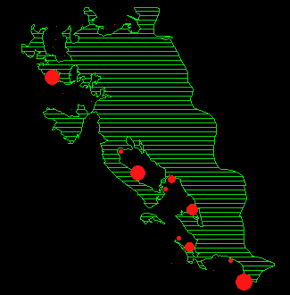 Abbildungen 15 a-l: Durchschnittliche Anzahl Rehe pro Beobachtungsrundgang und Beobachtungsfläche. Unten links ist ein Referenzpunkt eingezeichnet, der einem Reh (Durchmesser) entspricht.